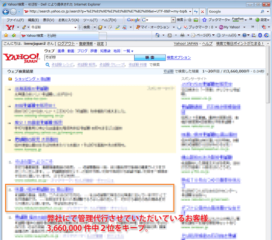 その秘策は?どうやったら検索結果の1ページ目に表示されるの?といったお問合せを多くいただきますが、実は100%確実な決まったマニュアルは存在しません。あくまで、METAタグの仕込みを始めとし、ページ内の最適化、キーワード出現率の設定、バックリンク、更新頻度等の総合的な仕掛けが必要です。そうした、定番のサポートとなりますが、長い目で見るとこれが最も有効です。(弊社のSEO対策はスパム等に成り得る行為は基本的に行っておりません)